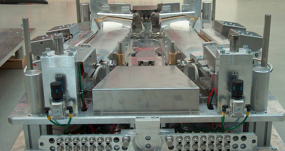Detailansicht Presskaschieranlage mit Werkzeugwechselfunktion